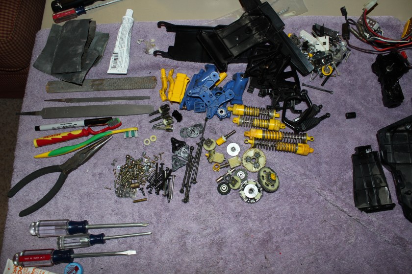 Back in 2013 I was just getting started on my journey to acquire the Tamiya top 100. Who would have thought it would be such an adventure. While looking for good deals on NIB kits I found a few used cars that looked like good candidates for a restore. One of those was a beat up BigWig (58057) that I ended up winning on eBay. I never owned one as a kid but it looked like an interesting build. Gung-ho to get started (as a naive restorer) I jumped on the project.