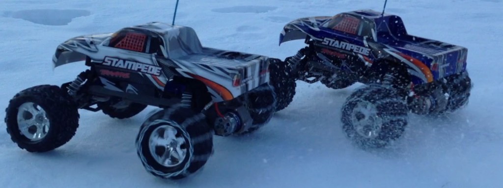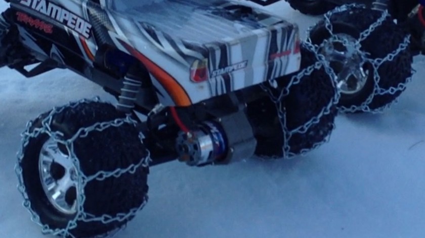 What do you get when you cross a brushless Stampede with snow chains? Lots and lots of fun! I was in middle school when I first got into R/C cars. A few of the neighborhood kids had one and we use to bash around from time to time. Getting my kids interested in R/C has generated some fun times and lots of memories.