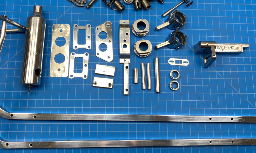 This project took a very long time to complete, I worked on it for over 6 months. After sourcing the three buggies, I spent considerable time tearing it apart. I sourced loads of new old stock (NOS) parts along the way knowing that I would probably need them. I won 2 large Kyosho NOS auctions, as well as some more targeted purchases. As usual, I am probably not making my money back if I ever decide to sell them.