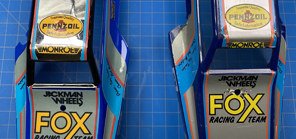 I didn’t know it at the time, but it turns out the decals were era reproductions. You can tell this since the coloring is off slightly from the originals. It was nice having the other Fox shells as examples of real decals to compare them against. I am not sure if the body shell was also a reproduction. There were no obvious indicators on the shell but then again there are not any markings on the original to help tell the difference.