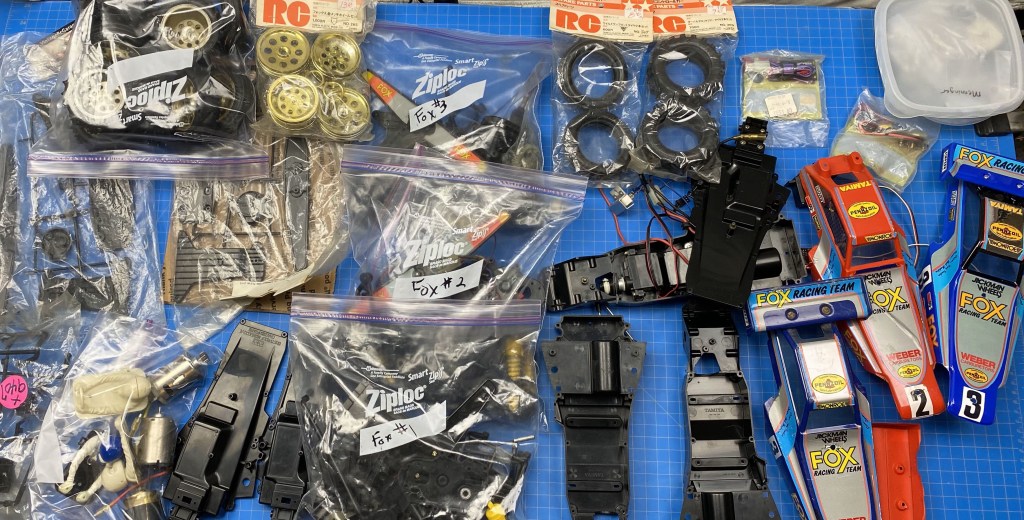 Few Tamiya buggies get more attention for their shiny gold rims than the Fox. Cha-Ching! This shelf queen build was a 2013 purchase which I bought in two lots at the time. The first lot had two used Foxes that also came with a load of NOS parts. The second lot was a good condition complete buggy. Looking back, I am not really sure why I bought two lots, but I am certainly not complaining now. The star of the show from the extra parts was definitely the brand new set of highly sought after gold rims and brand new set of front and rear tires. That was a huge score!
