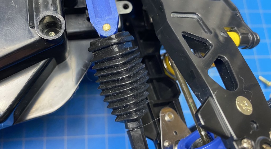 Another unique part on the BigWig is the steering rods that are protected with rubber boots that slip over the steering rods. The ends of the boots are held open with a square metal insert. This part is easy to lose. I assume this setup was chosen to keep dust out of the steering lubrication. I am not sure how successful it was in practice.