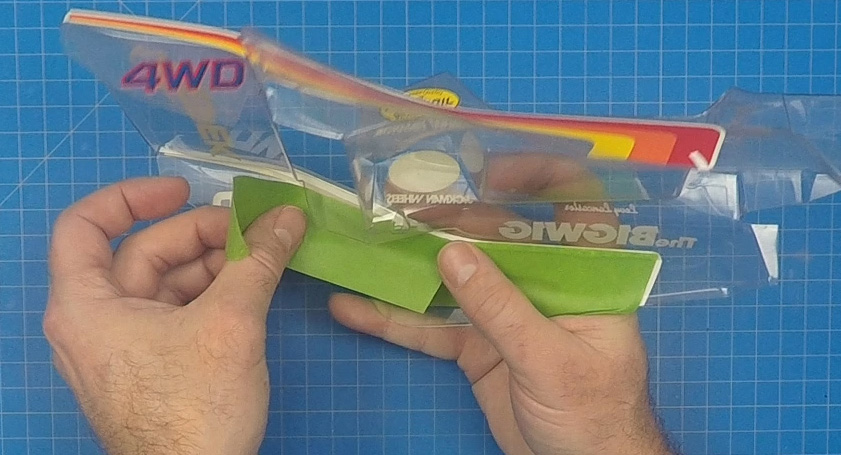 As I mentioned, the body shell was unpainted when I received it. Before you start any paint job make sure it is thoroughly cleaned. I use Tamiya Body Cleaner to do this step. The BigWig box art is a two color white and blue where the white is at the tips of the wings.