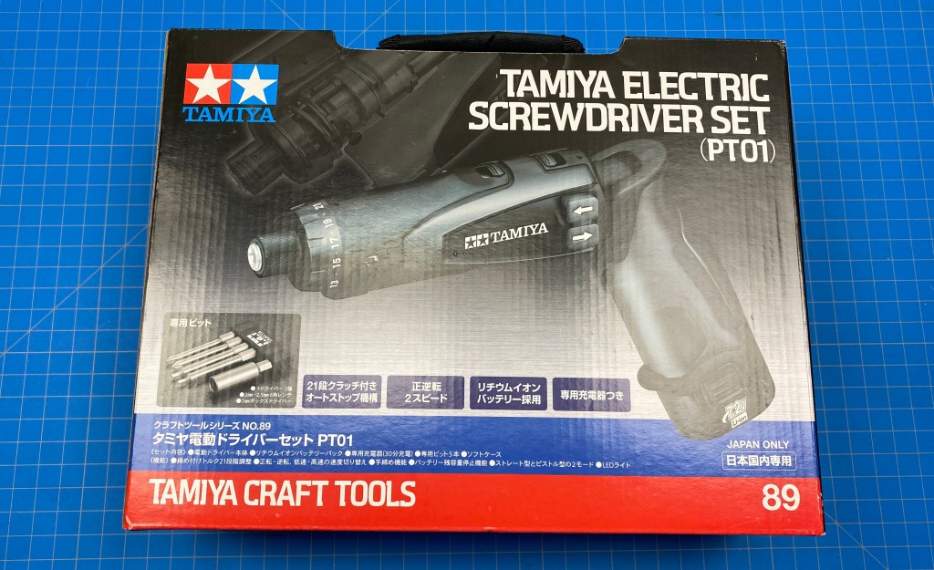 The package comes in a semi-enclosed box. Other than the name “Tamiya Electric Screwdriver Set (PT01)” just about everything else on the box is written in Japanese. As with everything Tamiya, the box is marketed well. The box has flattering marketing pictures on the front and some useful cartoon features on the back.